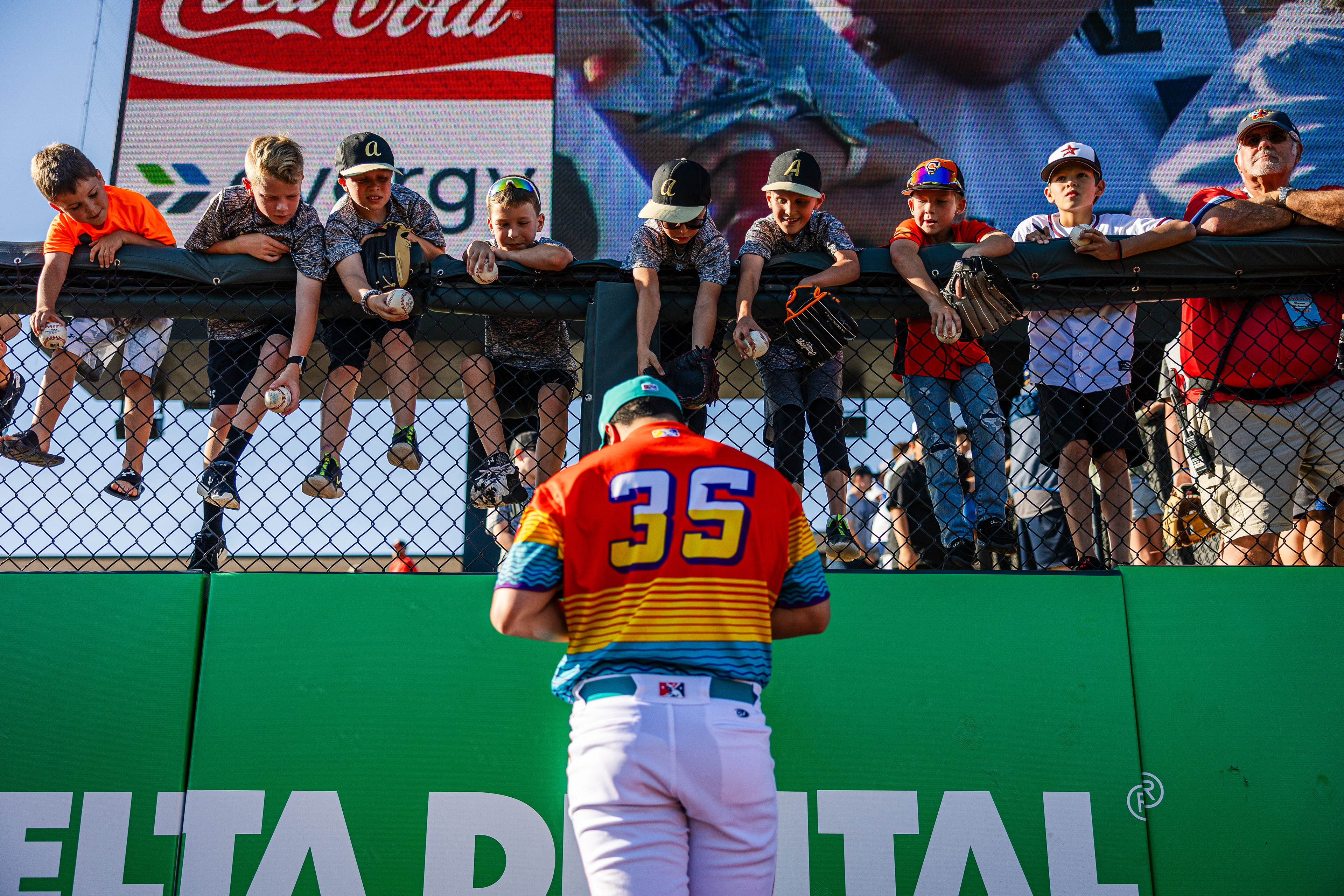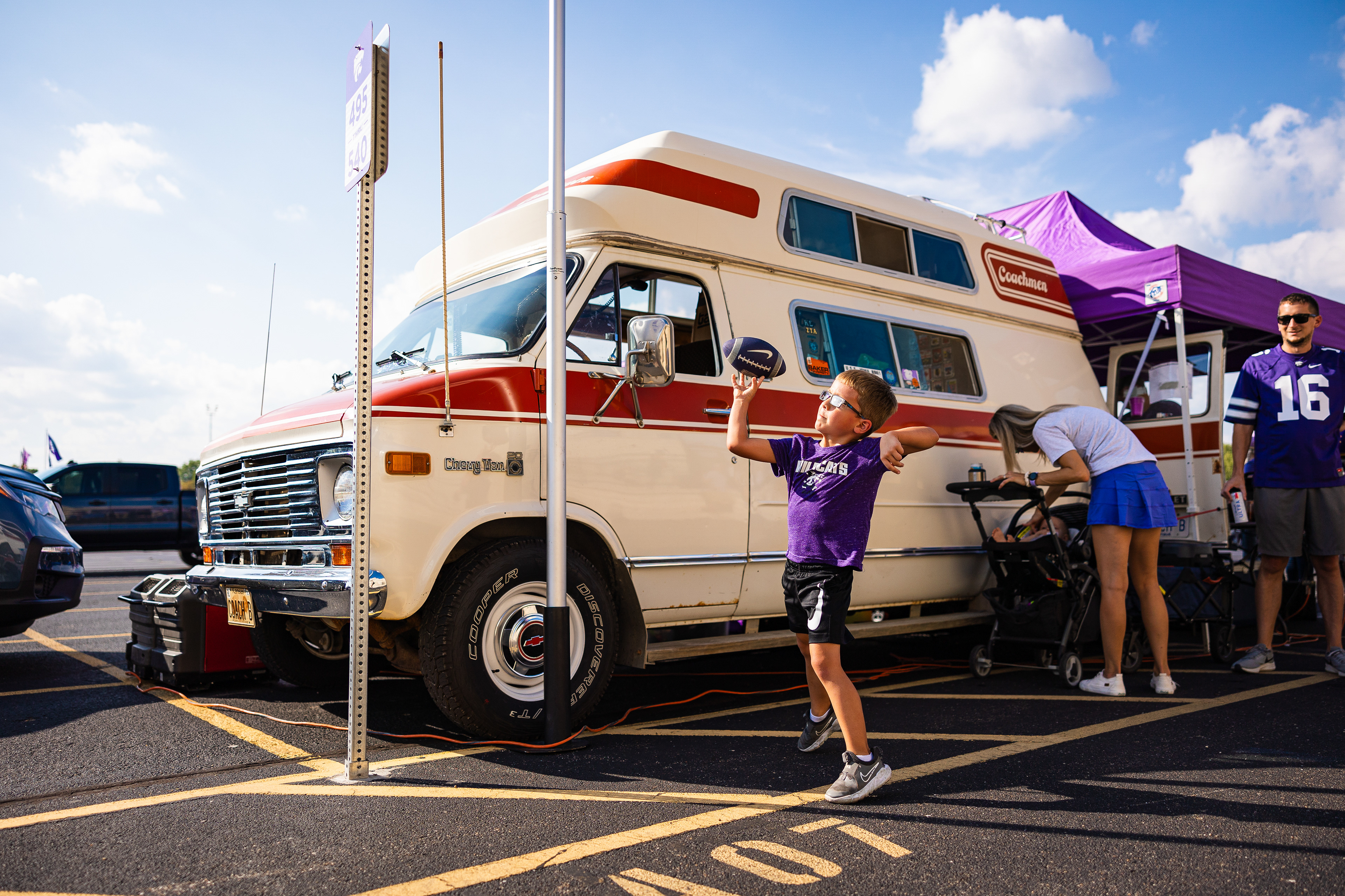 Kansas State Football Head Coach Chris Klieman high-fives a fan.