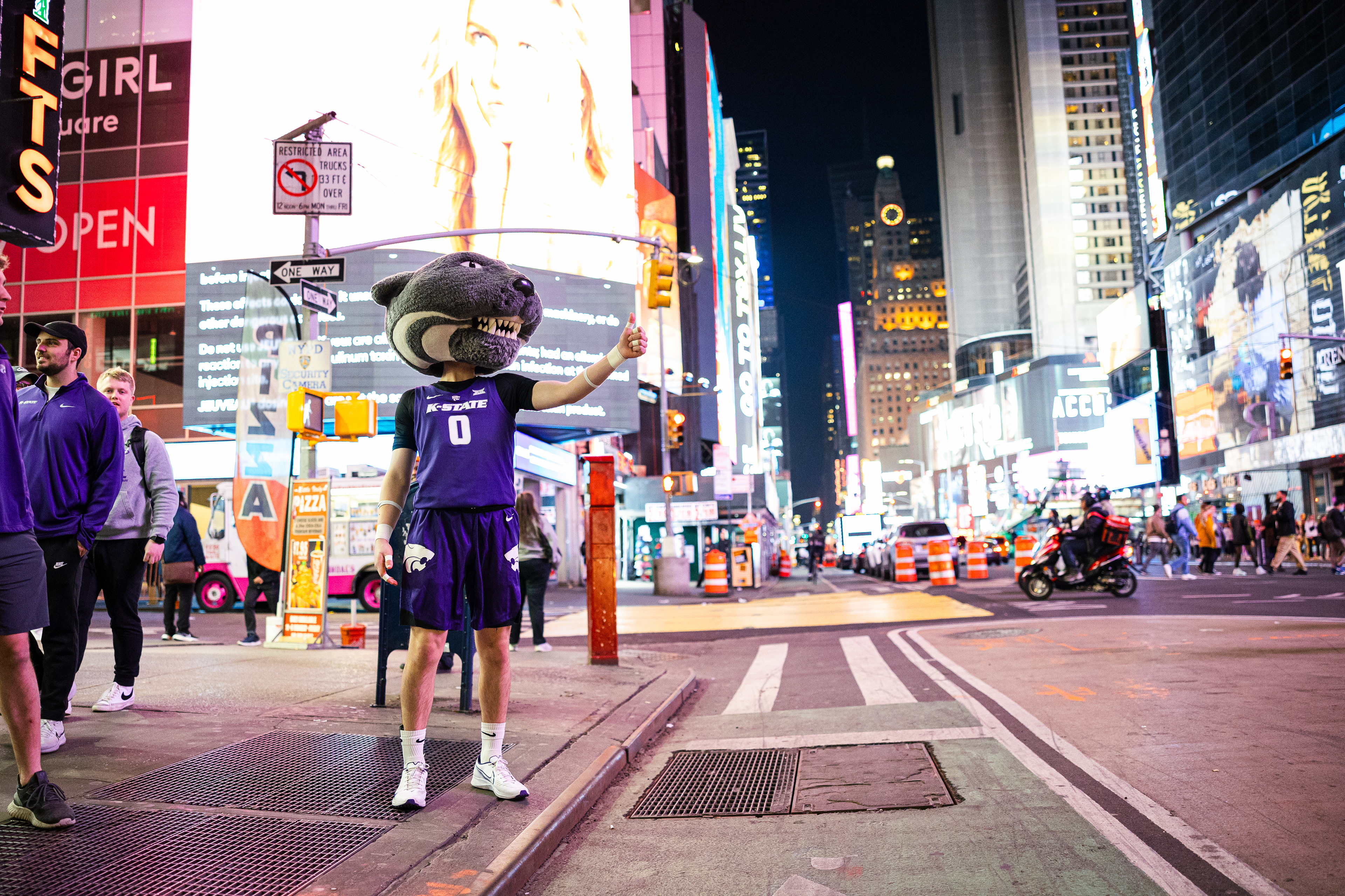 Kansas City Royal's mascot Slugger meets Kansas State's Willie the Wildcat for photo time.